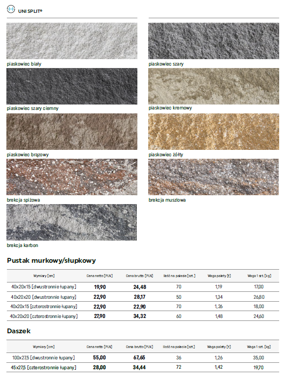 | szt | UNI SPLIT® [2-stronnie łupany], UNI SPLIT® [4-stronnie łupany] |