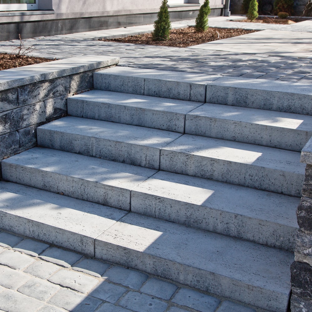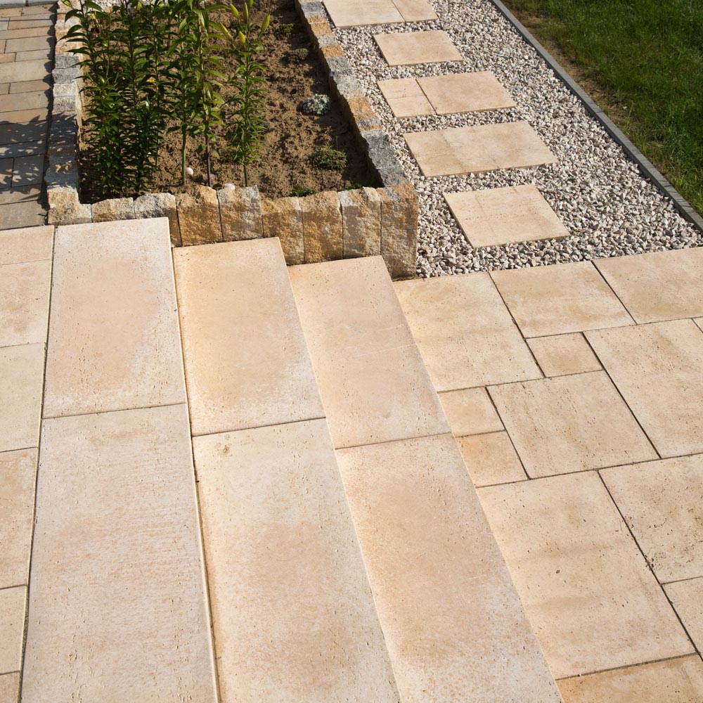 Bloki schodowe TRAWERTYN pasują do wszystkich nawierzchni z płyt i kostek brukowych. Dzięki strukturze trawertynu i kolorystyce są po prostu piękne. Bloki schodowe TRAWERTYN pozwalają na bardzo szybką zabudowę.