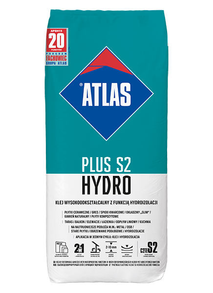 W recepturze kleju ATLAS PLUS S2 HYDRO zastosowano TECHNOLOGIĘ POLIMEROWĄ, TECHNOLOGIĘ PODWÓJNYCH WŁÓKIEN oraz TECHNOLOGIĘ ELASTOMEROWYCH WYPEŁNIACZY Z MODYFIKOWANEGO KAUCZUKU. Dzięki wysokiej zawartości związków polimerowych, włókien i wypełniaczy z modyfikowanego kauczuku, klej ten uzyskuje unikalne właściwości, czyniące go produktem o najwyższych parametrach technicznych i eksploatacyjnych, gwarantując trwałość przez długie lata.
