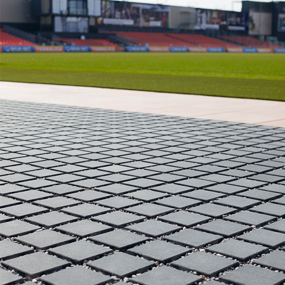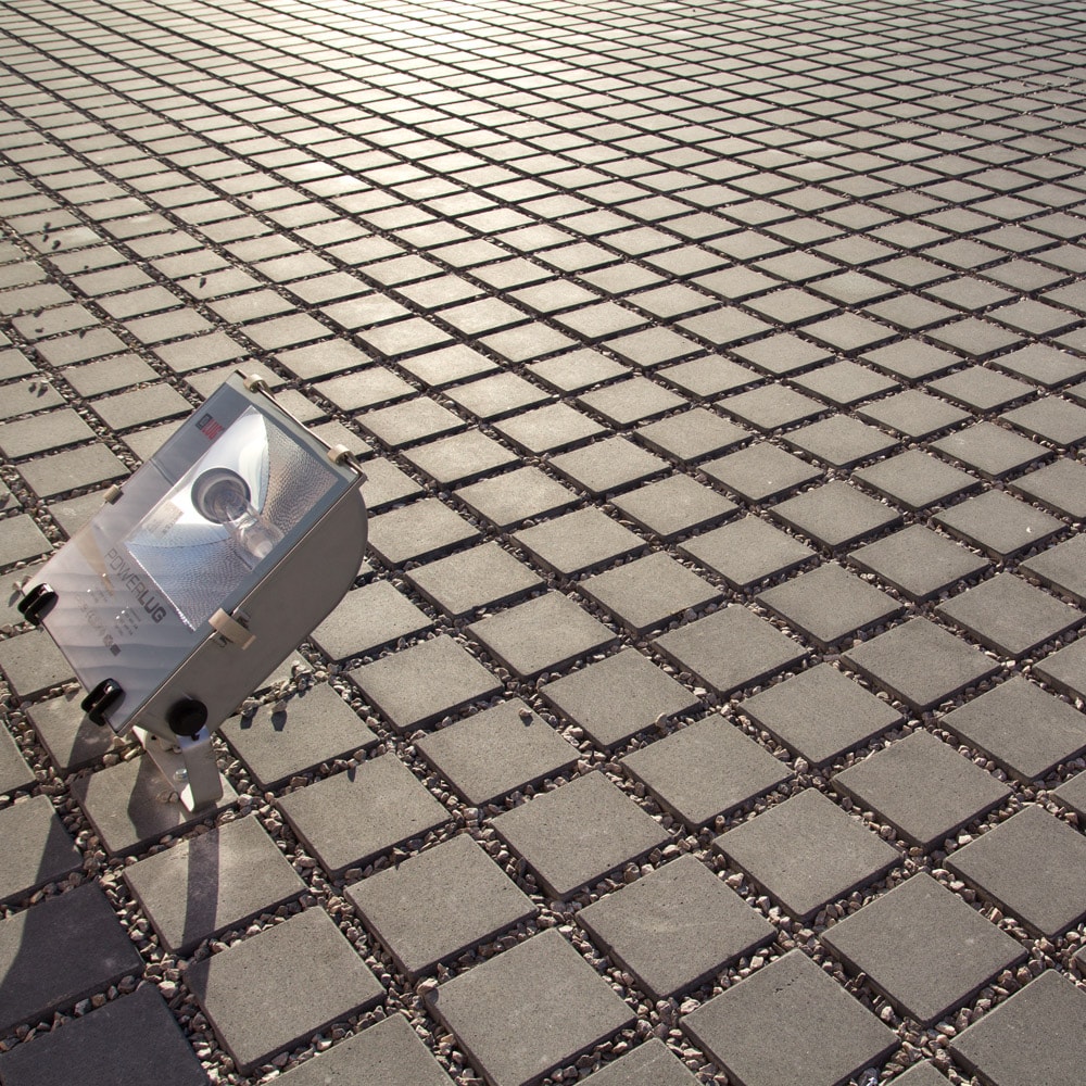Nawierzchnia ułożona z kostki Hydrofuga zapewnia powierzchnię biologicznie czynną w udziale 23% – przy ułożeniu odstępnikami czołowo do siebie.
