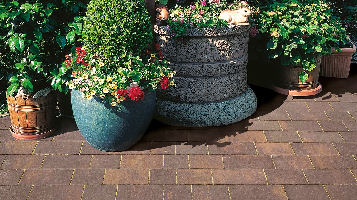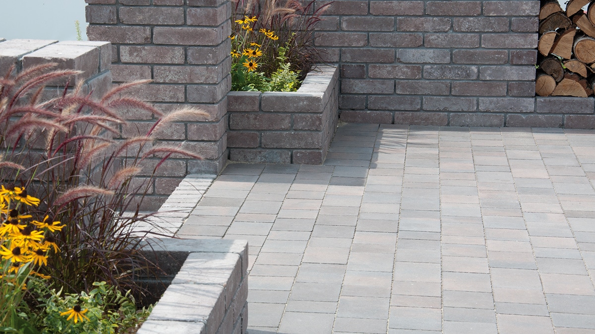 Pavimo to kostka brukowa o wielu obliczach, jej klasyczne i barwne powierzchnie są niezwykle ciekawą propozycją aranżacji otoczenia wokół domu. Zimne barwy sombra i ventana są idealne do kreowania jednolitych powierzchni. Oryginalne, ciepłe melanże canello, nokka i marrone wzbogacają aranżowane miejsce, doskonale łącząc się z zielenią ogrodu.
