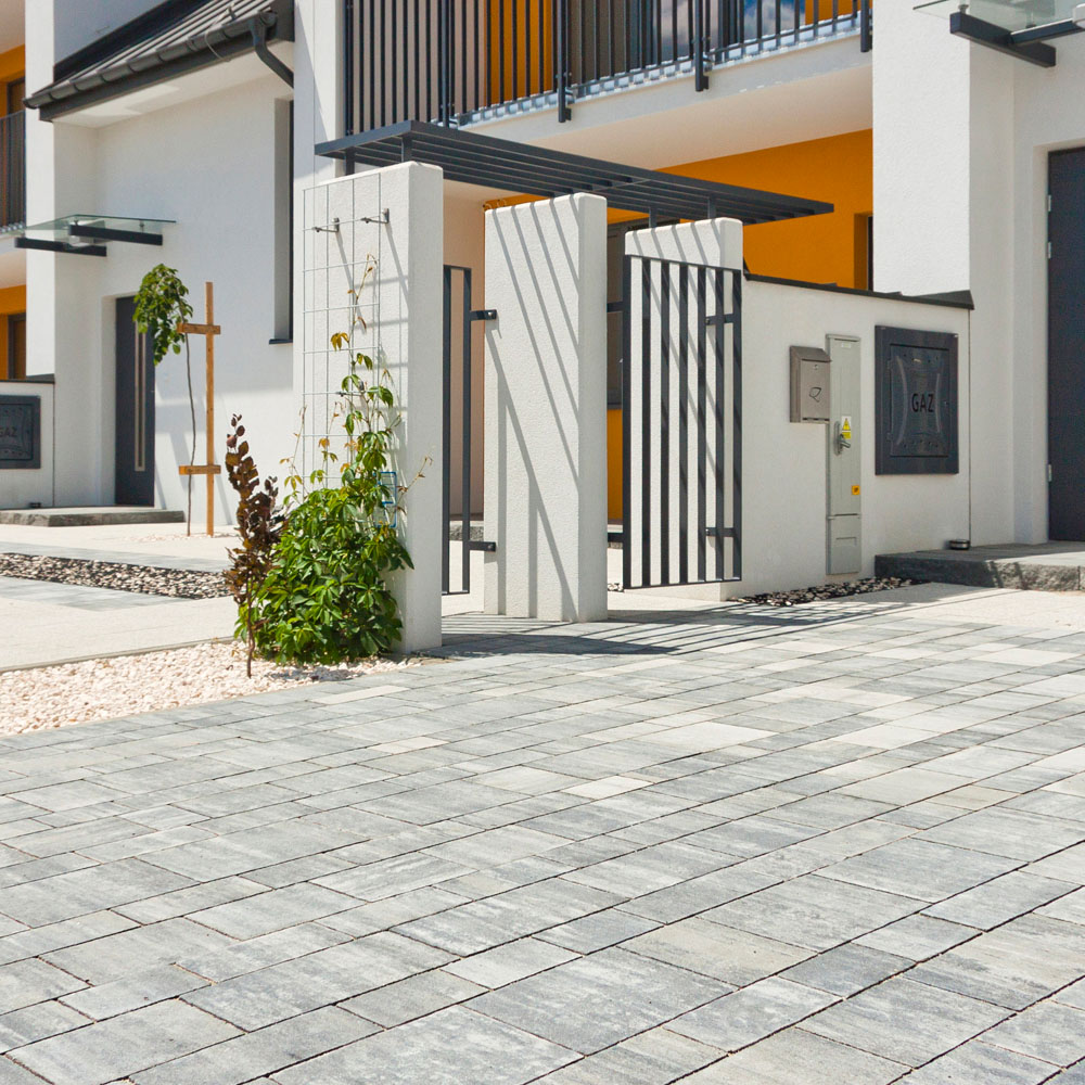 Promenada® została zaprojektowana tak, aby móc stworzyć z niej nawierzchnię o oryginalnej kompozycji stosunkowo dużych kostek. Kostki Promenada wyglądem przypominają starannie cięte i gładkie płyty kamienne o lekko nieregularnych, prostych krawędziach, połączone między sobą wąskimi spoinami. Dzięki zróżnicowanym wielkościom poszczególnych elementów nawierzchnię wykonaną z Promenady cechuje dynamiczny wygląd.