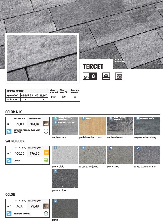 Doskonały wybór do zaaranżowania przestrzeni przydomowej. Składający się z trzech bezfazowych elementów o regularnych kształtach TERCET zapewni poczucie porządku i harmonii. Nierówna, lekko płomieniowana tekstura powierzchni pozwoli na uzyskanie nietuzinkowego wyglądu.