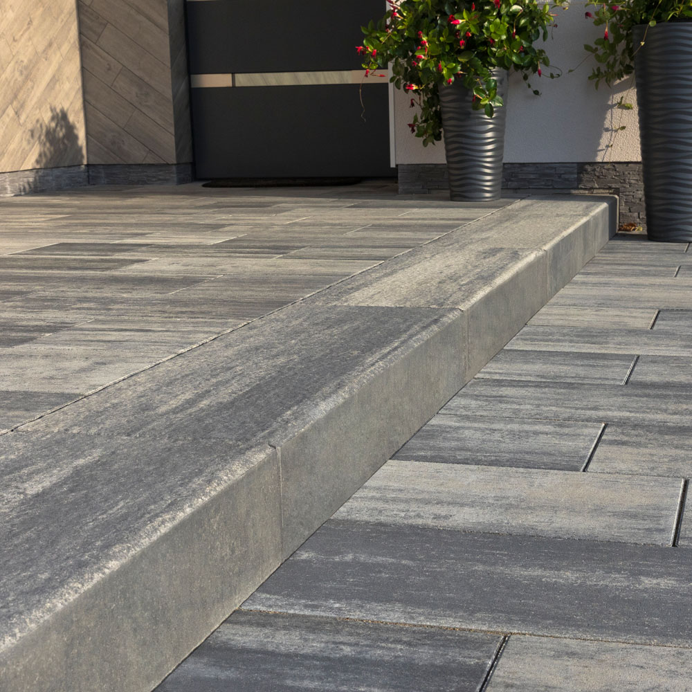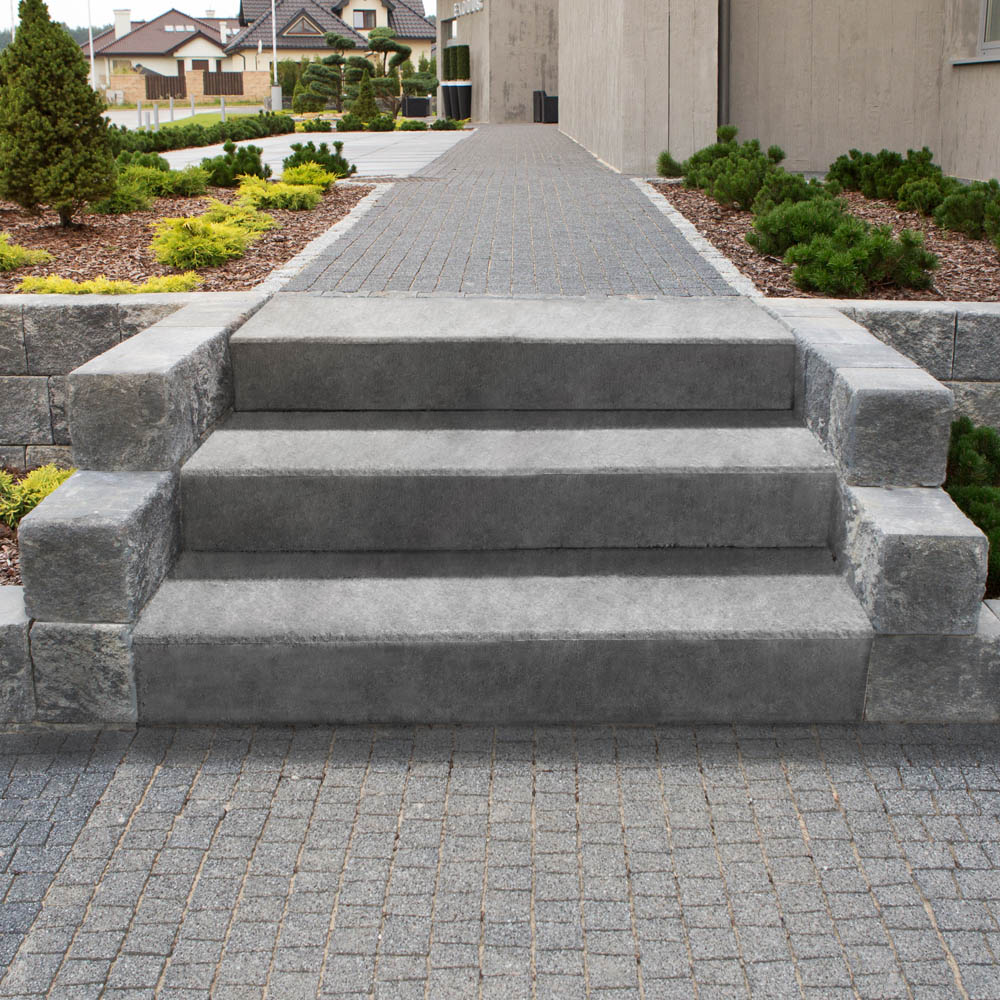 Stopnie Blokowe Baza to tradycyjne schody, często układane w połączeniu z kostką brukową w kolorystyce Color-Mix i Mono-Color. Wykorzystywane są wszędzie tam gdzie istnieją różne poziomy nawierzchni brukowych.